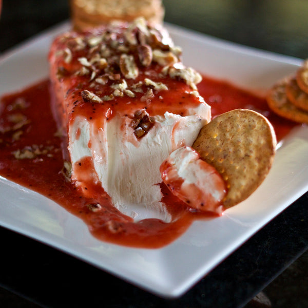 This is a pretty sweet thing. In Louisiana, food is everything. We use whole strawberries, red wine vinegar, and cane sugar from local farmers to make a fresh, sweet vinaigrette. Try it on a spinach salad, fruit salad, or over cream cheese — it’s incredible.
